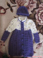 Через две недели у моей племянницы день рождения. Исполняется ей аж целых 7 лет. На вопрос : "Что ей подарить, игрушку или связать пальто?" Был дан ответ: пальто. Не вопрос. Порыскала по инету в поисках интересных схем и нашла вот такое пальто.