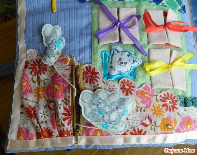 спасибо за оценку. с идеей предложить родителям сшить что-либо похожее, думаю, не получится, по той простой причине, что шить они не будут. во-первых, не все дружат с швейной машинкой, во-вторых, это очень кропотливое занятие и отнимает очень много времени. я знакома с воспитателями, так они говорят, что сами такие (или похожие развивайки) шили в группы. в любом случае, удачи вам! после того, как я сшила свои две книжки, я нашла много подобного в интернете. наилучшие сайты - это Любови Дальновой <karma_kar@rambler.ru> и Елены Бикбаевой Мастерская ЛенаБик <masterskayalenabik@gmail.com>. посмотрите, думаю, вам много там понравится. с их сайтов можно выйти на других людей, у кого тоже есть сшитые интересные книжечки. а я сейчас шью лоскутные одеялки для внуков, и в планах - развивающий коврик.