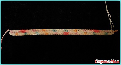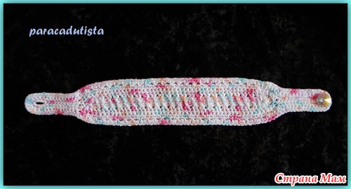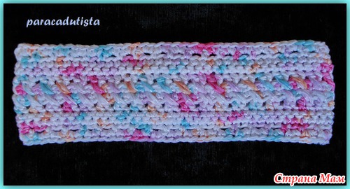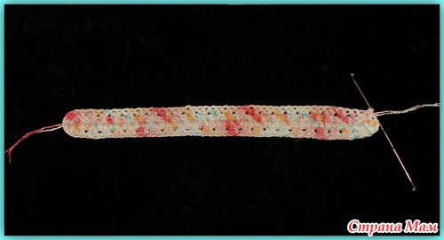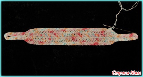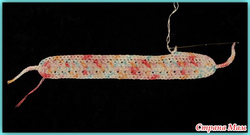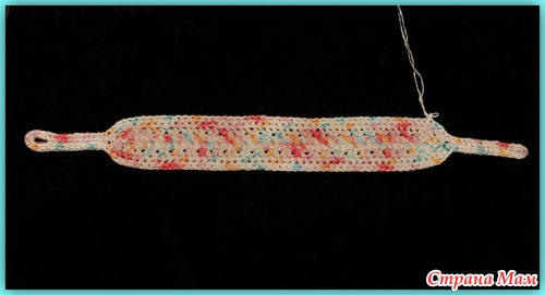 Пятый ряд. Повернуть вязание. Обвязать повязку. 2СБН в арочку из воздушной петли предыдущего ряда.(там где она есть). Последний ряд вязать без прибавок.