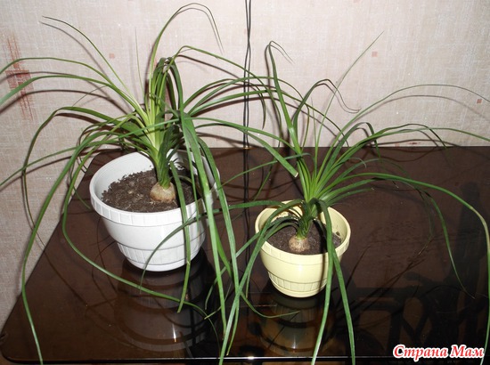 Только что принесла домой, сразу ее перевалила в другой горшок (более подходящий) думаю это не повредит, сделала все осторожно. Давно хотела Нолину, вот удался случай. Она еще молоденькая, я думаю. Хотя я про них мало пока знаю. Не помешали бы советы знатоков. У меня окна восточные, освещение умеренное. Насколько помню, поливать надо редко, но обильно. Я права?