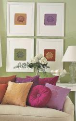 в ретро-стиле: страницы из старых журналов и каталогов вставляем в тонкие винтажные рамки, особенно эффектный “женский” вариант - страницы из старинных журналов мод (до середины 20 века)