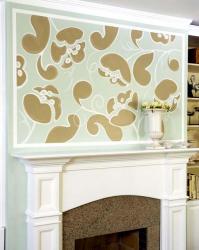 два варианта: попроще и посложнее; (1) из крупнофактурных обоев в тон стене, (2) трафаретом и краской на самой стене; вокруг “полотна” укрепляем пенопластовый или полиуретановый молдинг белого цвета
