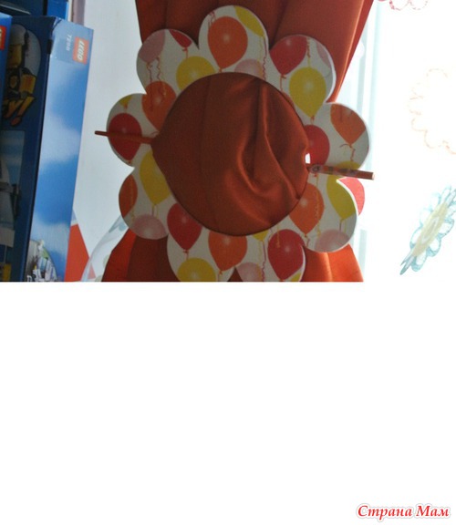 Хотелось, чтобы подхваты перекликались с цветочками на тюле, а в магазинах ни форма, ни цена меня не устраивали. Пришлось творить. Как говорится, голь на выдумку хитра!