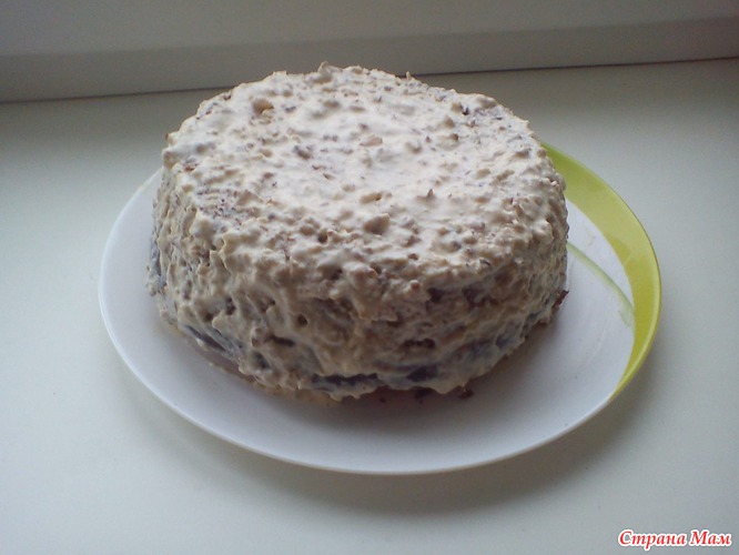 1 вариант - сметана, сахар, грецкие орехи (как на фото) Пропитываю немножко сгущеным молоком, разведеным в молоке.