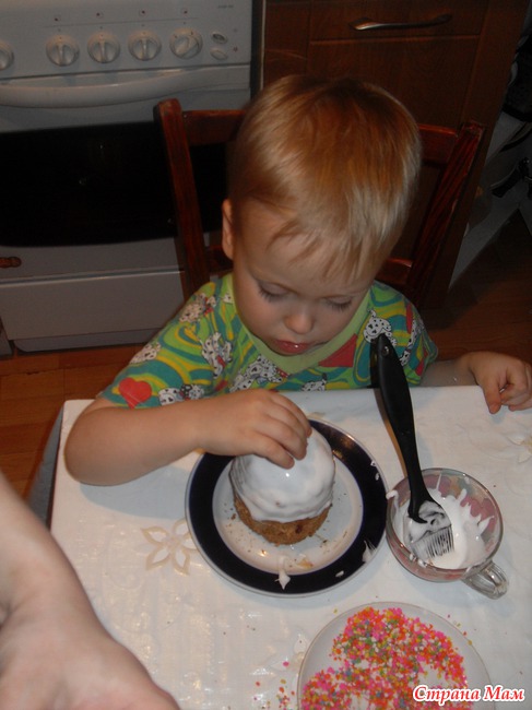 Короче испекла, а обмазывать решила вечером, вместе с детьми. Сходили погуляли с ними и стали творить.