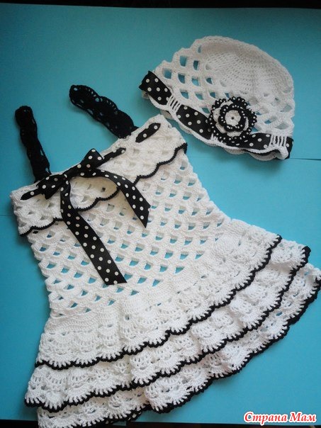 [size=15]Платья детям (и спицами, и крючком) - 2[/size]Перевела honey25 с осинки. Описание работы: Спинка (верхняя часть) ряд 1: на 2 года; первая сторона плеча крючком 2 набрать 3в. п., стсн в 3петлю от крючка, 2в. п., столбик с 3 накидами в верхушку последним сделанного столбика. *(2в. п., стсн в верхушку последнего столбика)-2 раза., 2в. п., столбик с 3 накидами в верхушку последним сделанного столбика, повтор от *-2раза, 2в. Читать полностью