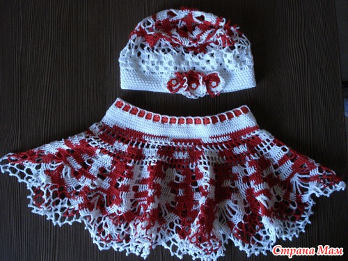 Вторая моя работа. Костюм для девочки 3-х лет. Юбочка из пряжи Сосо Рrint, верх из белого Сосо.