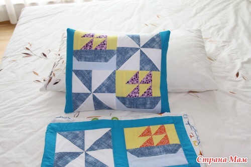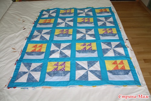 Все очень хорошо, но я бы посоветовала поэксперементировать с окантовкой одеяла "Кораблики". Я понимаю, вы подкладку завернули наверх и прострочили, а если - желтенькая окантовочка, совсем другое восприятие. Я так думаю.