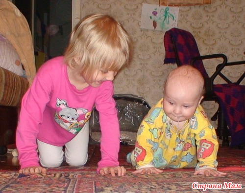 Итак, ползаем быстрее всех в доме))) Маму догоняет в два счета, сестренку обгоняет в парном ползании))) Папа даже соревноваться не стал, а кот не умеет. В общем, сынок чемпион.