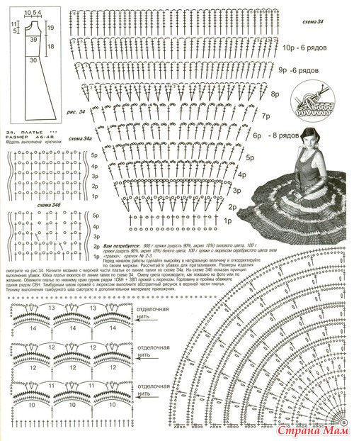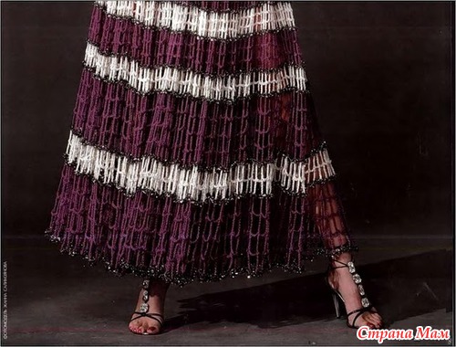 Очень понравился низ платья, быстро и просто (на первый взгляд но села разглядывать схемку, и призадумалась... с чего начать )) кто вязал такую или похожую, отзовитесь. Какими ниточками лучше вязать, чтобы она не была сильно тяжелой. Может есть еще схемки подобных юбочек