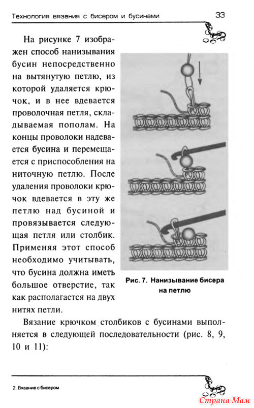 2 способ-введение бусин(бисера) в процессе работы. Для этого понадобится либо тонкий крючок(0.95-1.0- если он проходит в ушко бусины), либо кусочек тонкой проволоки или лески