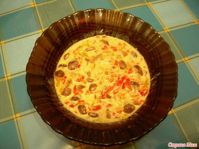 Майонез можно заменить сметаной, а к грибам и перцу добавить картошку.
