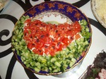 Вот не давно у меня было День рождение. и я решила сделать че та новенькое и удивить всех. вот я решила сделать такой салат. форму я увидела а, все изменено под мое. начнем?