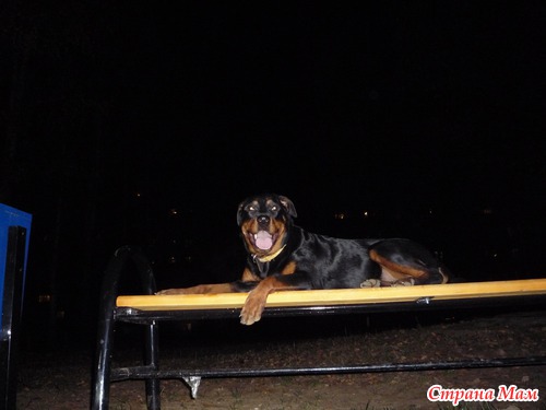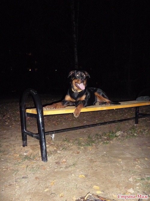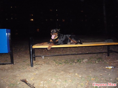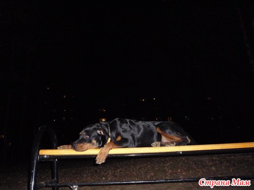 Тэги: ротвейлер, ночь, скамейка, фотография