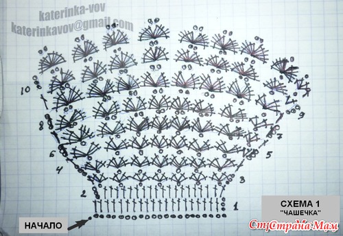 2й вариант: начинать вязать узор с внешнего края кружева - к наружному (тот, который пришиваться к горловине будет), прибавляя количество петель по узору.