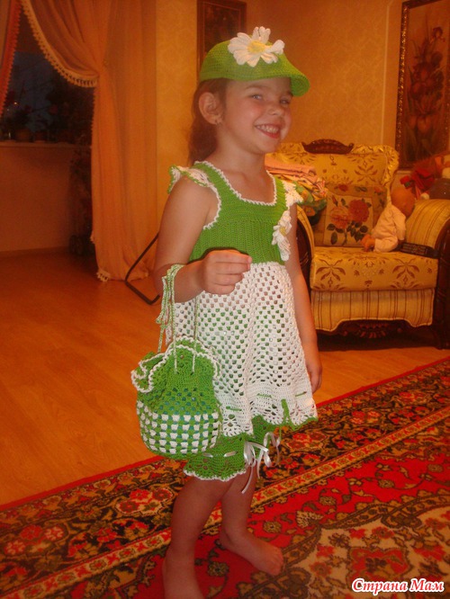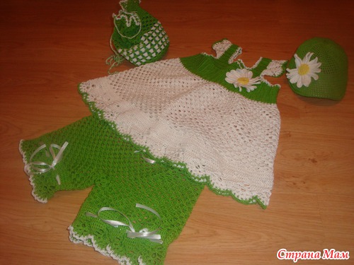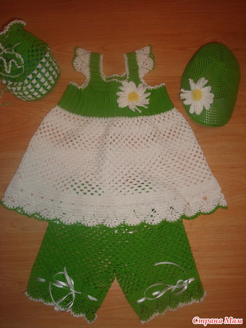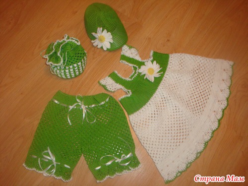 Тамара,описания в голове. по размерам дочки вязала.схемка простая,3 СН и 2ВП. всё набирала по размерам. верх вязала как маичку,по ней же и сокращения делала. крылышки до вязала как оборочка снизу. обвязку нашла в инете та,которая понравилась.шортики тоже набор петель по размеру ОБ плюс 2 см. связала нужную длину, вывязала ластовицу 4 рап с зади, 3 рап спереди, а потом каждую штанинку отдельно вязала,набрав по ластовицы петельки.на нужной длине вязала обвязку. ну вот так,извините если плохо объяснила.