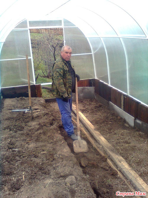 В последний день мы уже перекопали в теплице землю под посадку помидоров и огурцов: