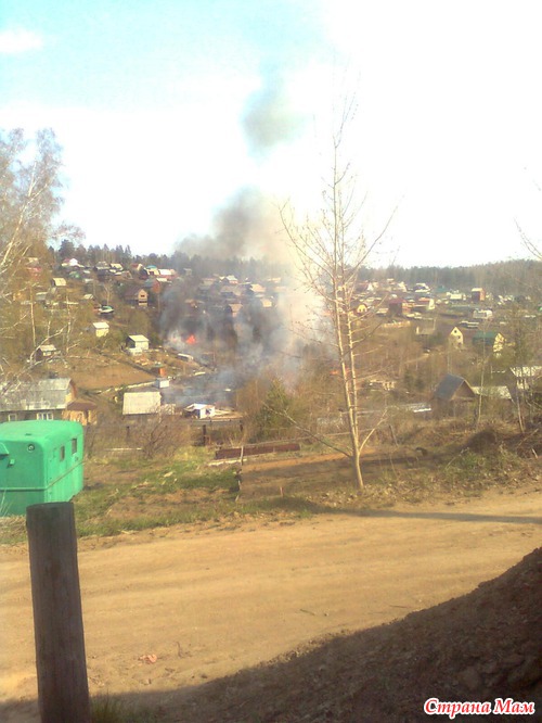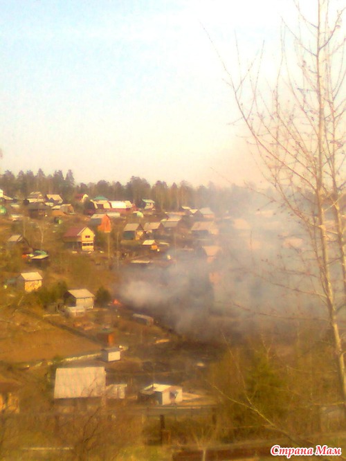 Вдруг я заметила на соседнем садоводстве огонь, я испугалась, не зная что делать, но увидела, что пожар уже тушат. Сгорело от поджигания сухой травы площадь в 4 участка: