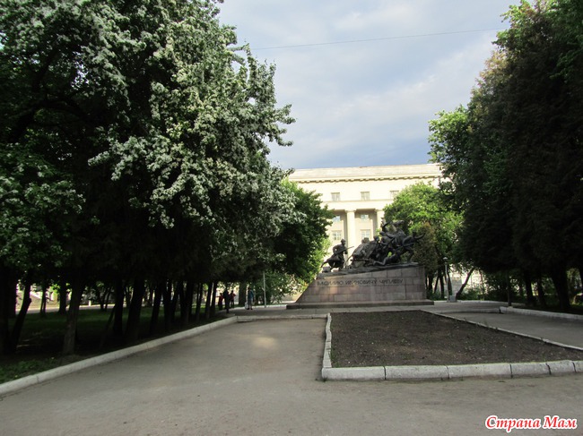 Да, это Тихорецкий проспект. Половина проспекта тянется вдоль парка Сосновки, о котором я уже писала, а половина обычная улица. Но есть секрет у проспекта. Если свернуть в глубь домов можно увидеть памятник самому легендарному герою гражданской войны. Вы догадались? Конечно, памятник народному герою многих анекдотов Василию Чапаеву