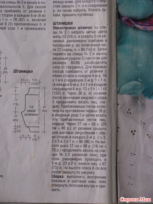 Это схема к первой шапочке, розовая полоса. Вязала на пяти спицах (по кругу). После 24 рядов вязала просто белым, лицевой гладью. На высоте, которая необходима, начала убавлять, в каждом круге 2 петли провязывала лицевой. И так до конца. Пампушка диаметром 12 см, того же розового цвета.