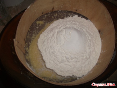 опять миксером всю массу перемешиваем, потом добавляем просеянную муку