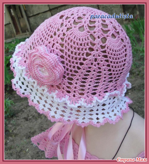 Первую панамку я вязала по этому МК https://www.stranamam.ru/post/2509967/ из виолета очень маленьким крючком, меньше №1. Только, ВНИМАНИЕ, нужно вязать на 7 клиньев. Расход один моток в 50 грамм.