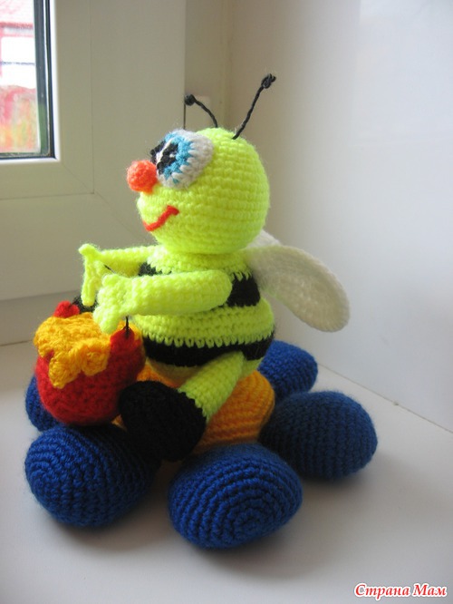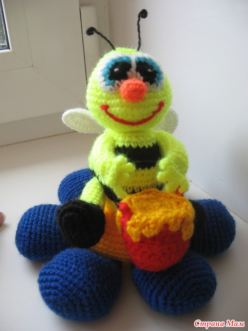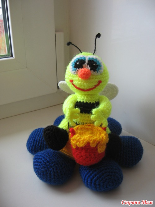 Пчелка суперская, я уже об этом писала.Но, к сожалению, пока нет времени на игрушки.Набралась заказов как собака блох. Но я ее обязательно свяжу!! У тебя, Олечка,талант!!!!!