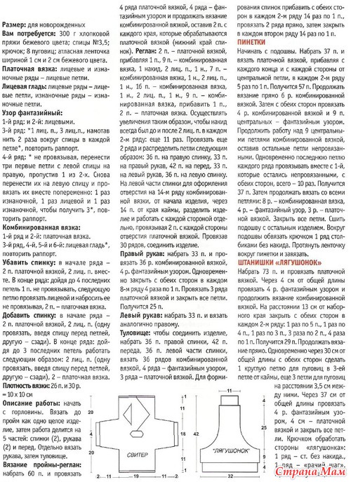 http://xobi.com.ua/ Бежевый комплект для новорожденного (жакетик, шортики на пуговицах и пинетки) связан из хлопковой пряжи спицами №3 Читать полностью