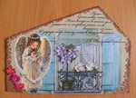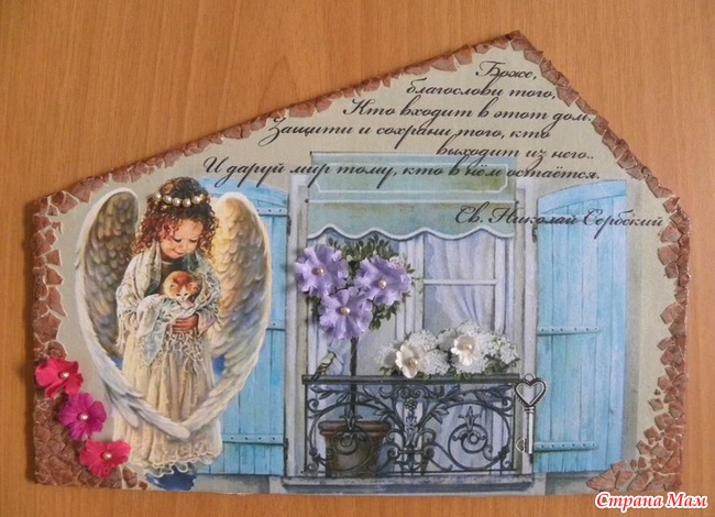 Основа из ДВП, в фотошопе объединила подходящие картинки, распечатала и т. д. Крепится на дверь при помощи двухстороннего скотча