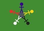 Синяя фигурка сверху на флаге - символ Бога, который любит всех одинаково. Поэтому и мы, как его образ и подобие, должны любить и уважать всех людей, вне зависимости от их расы, цвета кожи, вероисповедания, материальной обеспеченности и других факторов.