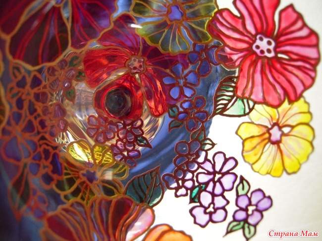 И так, во-первых: Бокал для красного вина, расписан в технике "под витраж"