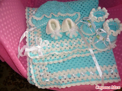 Тэги: новорожденным, Плед крючком, комплект крючком, головные уборы, чепчик крючком, пинетки спицами, пинетки крючком, спицами, крючком, вязание для детей