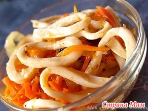 800 г кальмаров, 2 больших морковки, 1 большая луковица