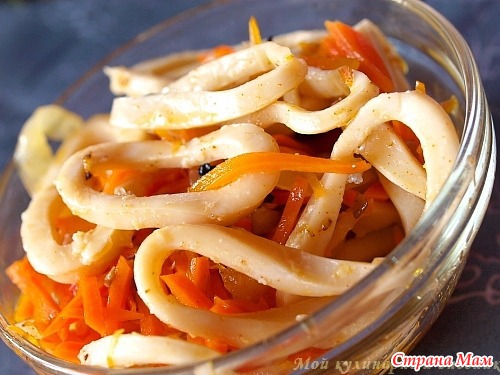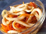 800 г кальмаров, 2 больших морковки, 1 большая луковица