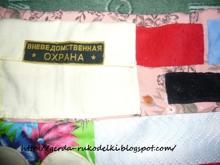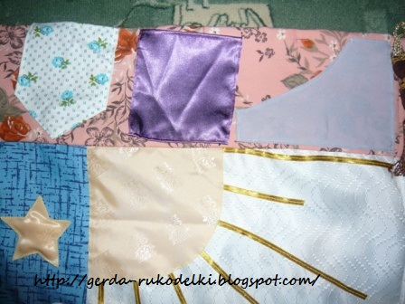 А тут кармашки (убирать звезды), а по бокам - пряжки, пуговки разного р-ра и текстуры, тряпочки разные на ощупь(вельвет, трикотаж, мех и т. д.)- все, что дома нашли и пришили!