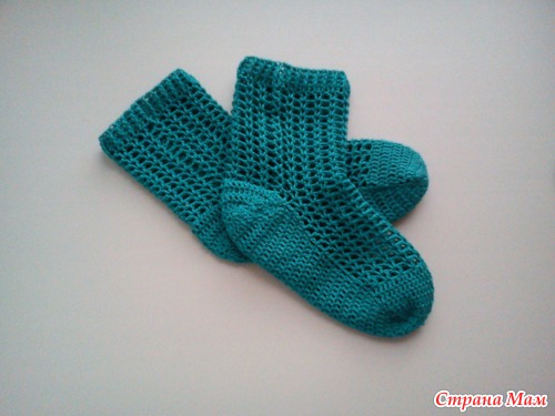 Носочки связаны без отрыва нитки, крючком.Если кому интересно http://www.livemaster.ru/item/1339415-materialy-dlya-tvorchestva-mk-azhurnye-nosochki.