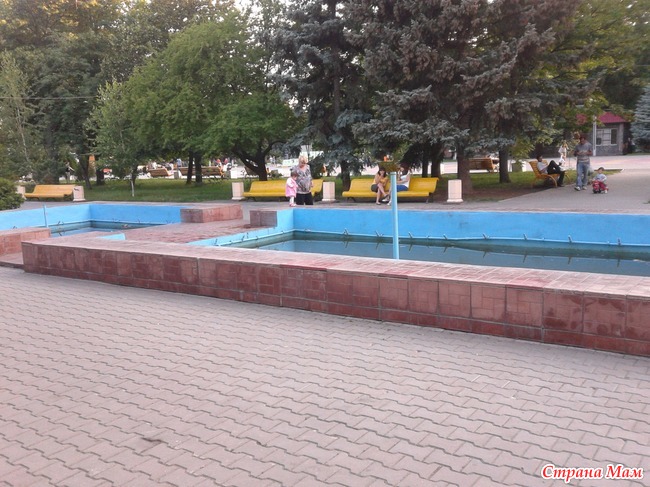 А ребятишки очень любят приходит к воде, к их радости, воду на фонтан завезли с лягушками и теперь весь водоем забит головастиками