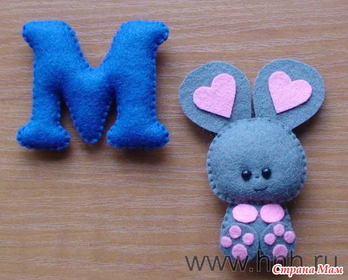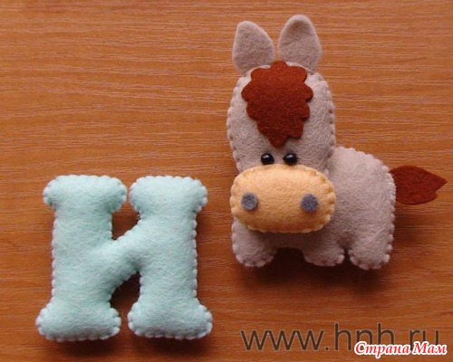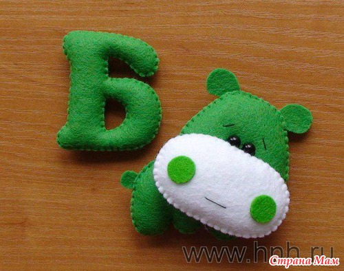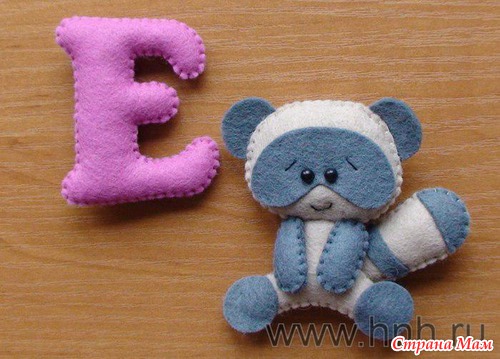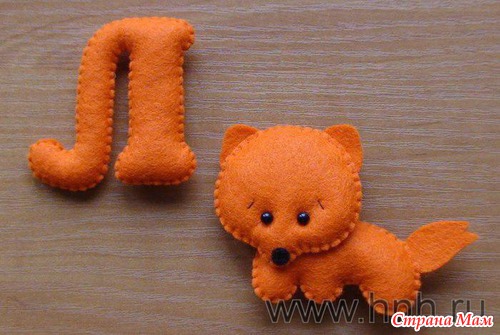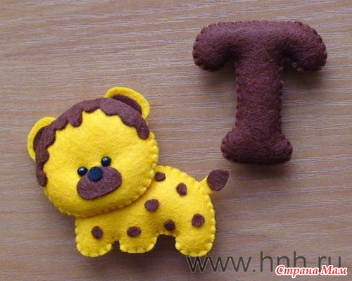 На каждую ячейку-кармашек для буковки - сама буква из фетра, и животное. Это самостоятельная коллекция маленьких зверюшек - игрушек.