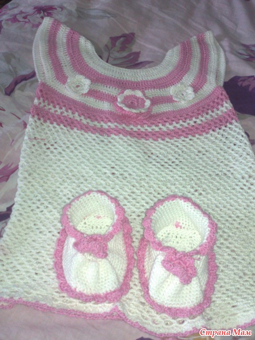 туника и пинетки, нитки Пехорка"Жемчужная", крючок№ 2