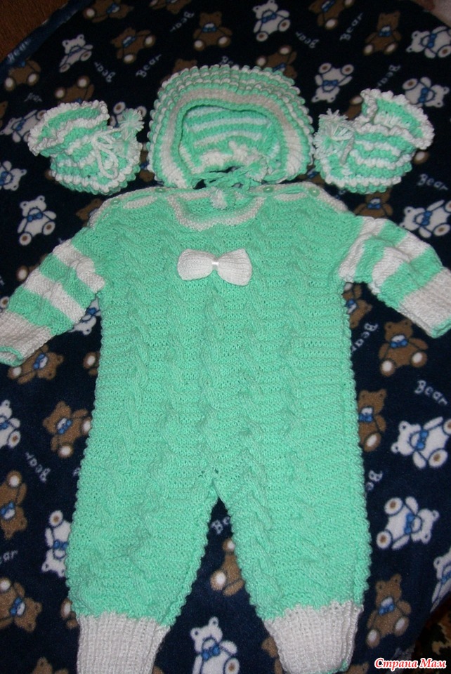Вот добавила шапочку и пинетки к ранее выложенному комбезику!!!