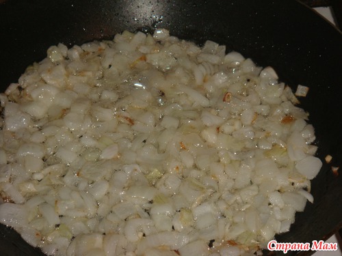 на масле обжариваем мелко порезанный лук до золотистого цвета