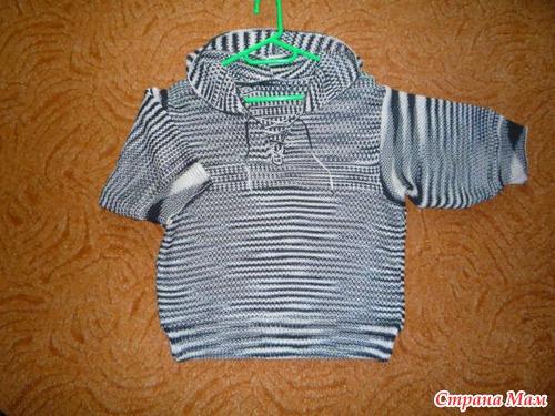 Связан мужу на машине фангом. Нитки- хлопок 100% "Анна". Расход - 400г на 50-й размер. Фанг дырчатый, всё продувается. Обновка для отпуска на море в августе.