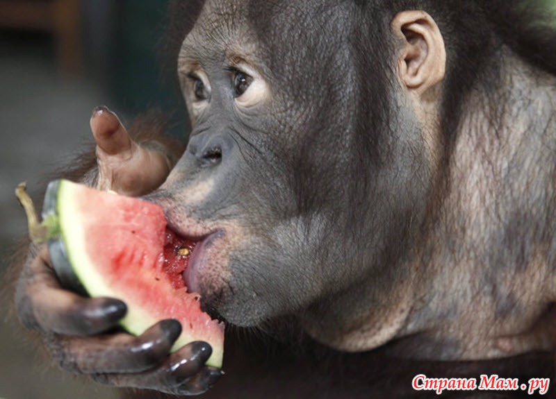 7. Орангутанг ест арбуз в зоопарке Наннинга, провинция Гуаньси. (REUTERS)