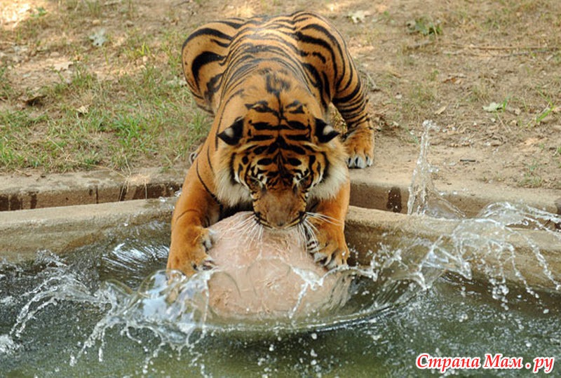 Пока люди спасаются от жары под кондиционерами и на море, животным в зоопарке ничего не остается, как сделать то же самое в бассейнах, расставленных в их вольерах, и с помощью фруктового льда.