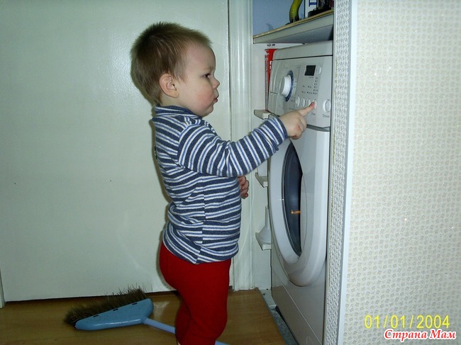 Мой сынулька Димулька Вот такой у меня помощник. Сначала подмел, затем стирка.