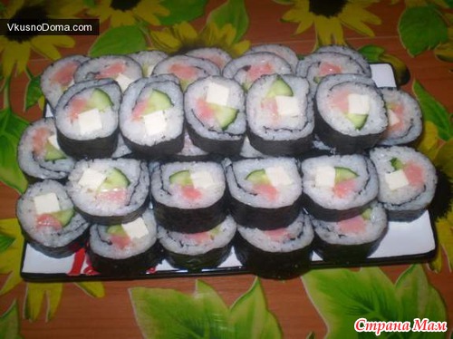 Суши ролл с рыбой, огурцом и плавленым сырком