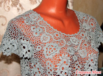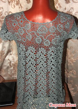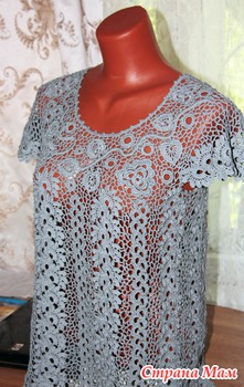 Связалась вторая блуза на заказ. Как вы помните, приблизительно такого фасона была "Синева". Прибавились рукавчики и немного изменилось расположение листиков, цветочков. Но просто повторить сложно одинаково. Поедет опять в Москву.