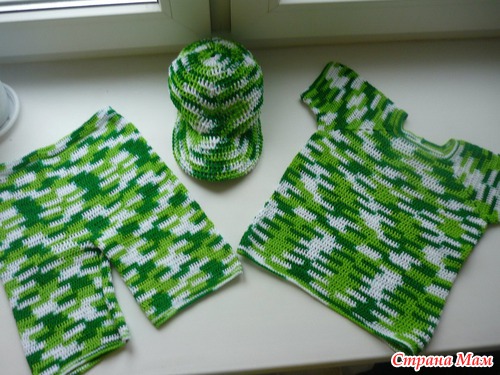 ): кепочка (вязала и ориентировалась на МК от Розетки), футболочка и шортики на лето