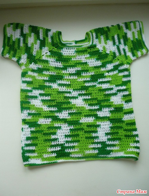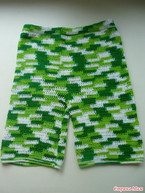 Набрала столько же петелек сколько в конце футболочки было, соединила в круг и вязала 4 рядочки столбиком с накидом. Далее пятый ряд начала вязать без накида соединяя с первым как бы (туда резинку просунула позже). И вязала по длине (примером служили джинсы, измерила от пояса до паха (между ножек). Когда связала до нужно длины, то когда должен был начинатся след.рядок, то я просто набрала 5 возд. петелек и соединила с серединкой круга получившегося, в итого разделила на две части, для ножек. И уже отдельно вязала по кругу левую и правую часть. Вроде все Из меня не очень объясняльщик Если будет нужно, еще раз поясню, если что-то непонятно