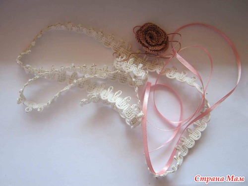 Было: тесьма х\б эластичная, какая-то розочка и кусочек розовой атласной ленты)